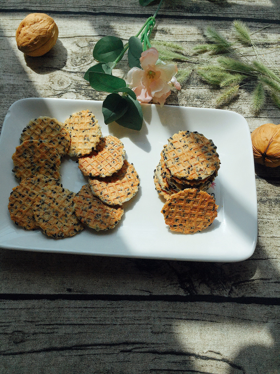 咬一口嘎嘣脆,关键还特简单。里面加了黑芝麻和核桃香味更足了,营养价值也更上一层楼。这个饼干是脆的,既锻炼了宝宝牙齿骨骼发育又健脑益智了。
