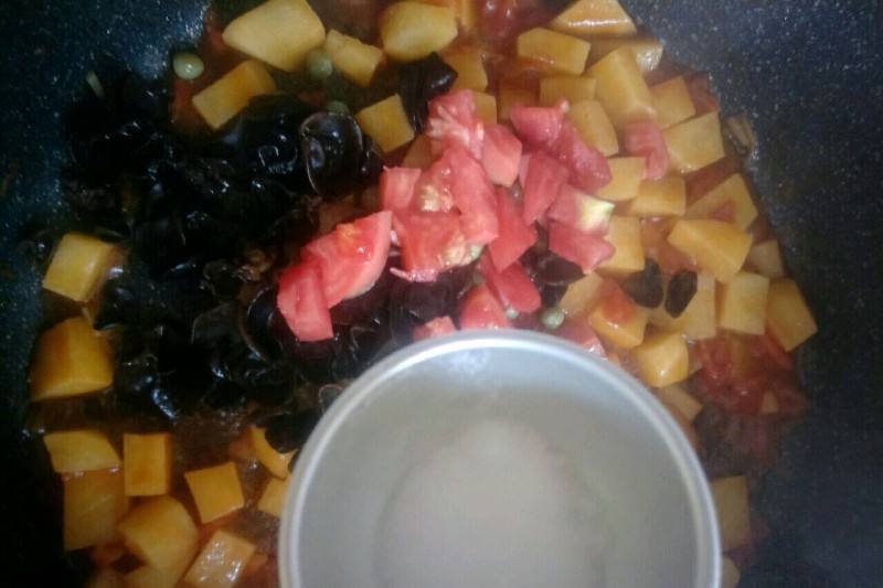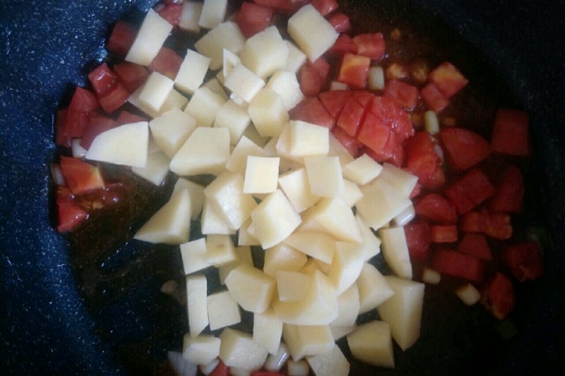 西红柿土豆块中盐的用量根据自己口味添加。