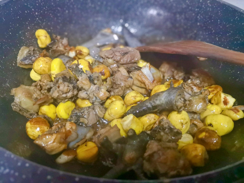 一般可以多加点水炖板栗鸡汤,汤汁也很营养,我这个是特别做成浓缩版的,就想咖喱汁一样,很下饭
