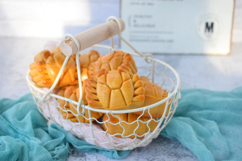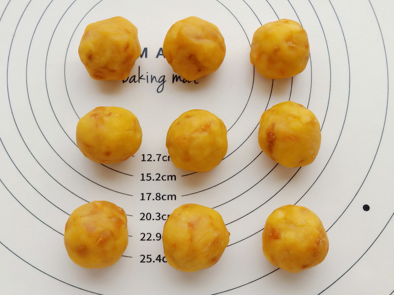 1、金沙奶黄馅不要炒时间过长,炒散了不好成团,炒的差不多了用刮刀按压一下感受一下状态(炒的时间短,馅料的水份大烤的时候容易裂)与平时买的馅料软硬差不多就可以。