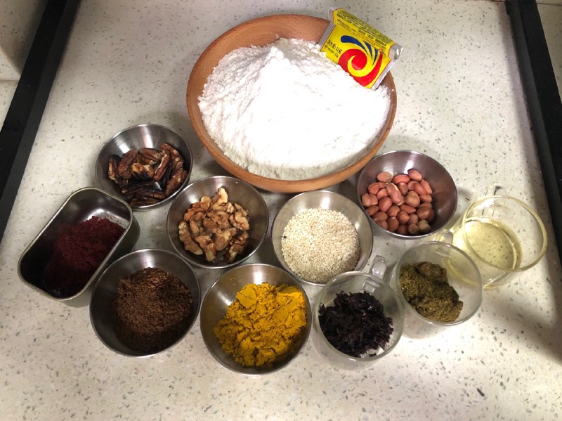 这是一款青海、甘肃特定地区的传统中秋月饼,也是发面馒头,几乎出了那个地区很少有人知道它。 我第一次吃有点惊,记忆里从未有过的香味混合在馍馍里。 六种原料是来自青海、陇东地区特有的食材,不同的颜色,不同的馨香搭配在一起喜庆又好吃。 农耕时代里的就地取材造就了许多和千层大月饼一样独一无二的食物。 嗯,它奇香无比。