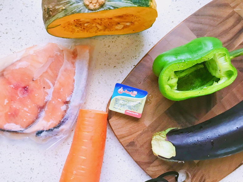 瘦身低脂0碳水—三文鱼烤杂蔬
