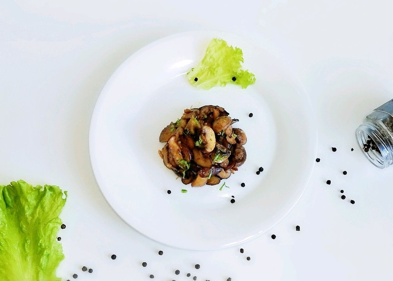 美食大咖的炒蘑菇里加入了欧芹碎,我们这边因为没有这个香料所以我就替换成了葱,或者用香菜也很不错哦!