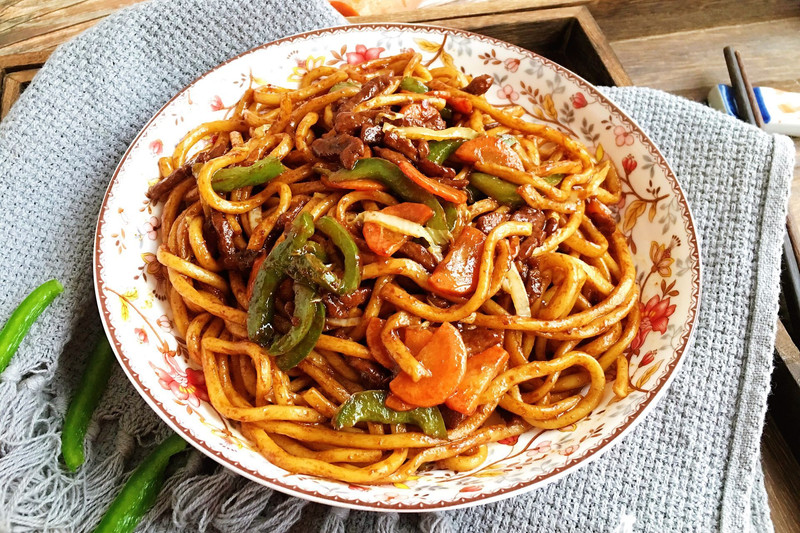 记得上大学那会,最喜欢吃的就是校园外面小摊上卖的肉炒面,满满的一盒,特别好吃,每次都能把自己吃撑。今天正好家里有食材,搜寻着脑海中的记忆,居然真让我“复制”出了往昔的味道,简直太好吃了。