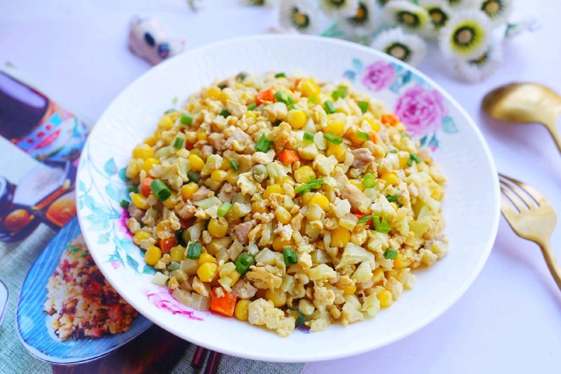 今天分享一道最近超火的欧阳娜娜同款无米炒饭,这款蛋炒饭没有一粒大米,但无论外观还是色香味形上都和蛋炒饭极其相似,入口清爽,肉的鲜香和蔬菜粒的甜相碰撞,口感超赞。食材常见,做法简单,好吃不胖,绝对是减肥瘦身的圣品。