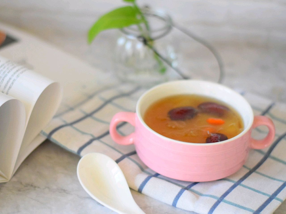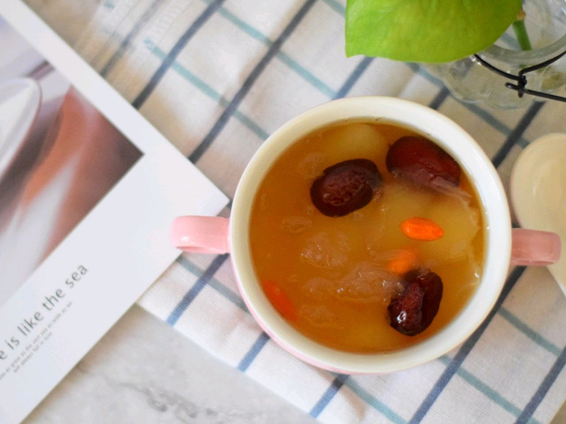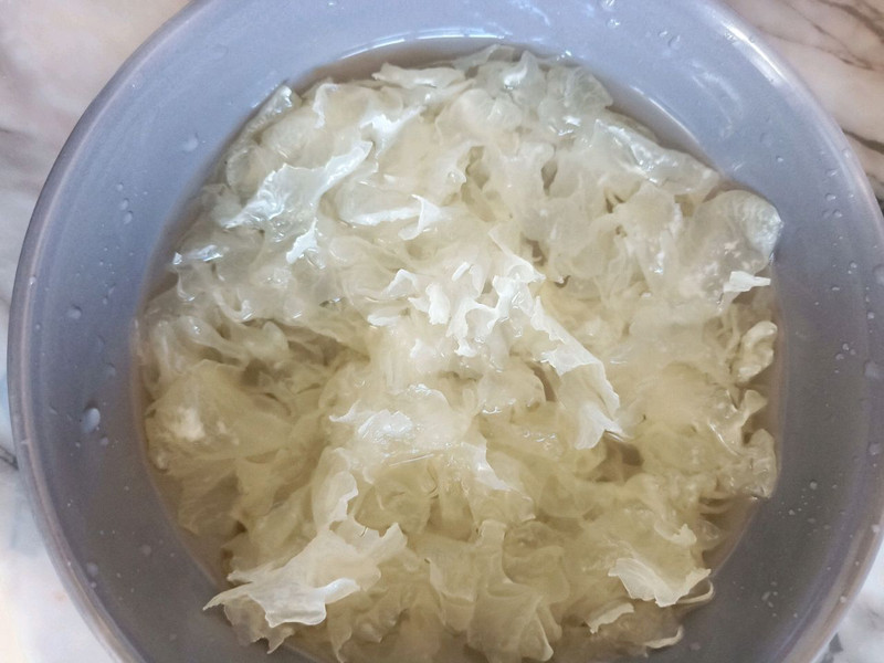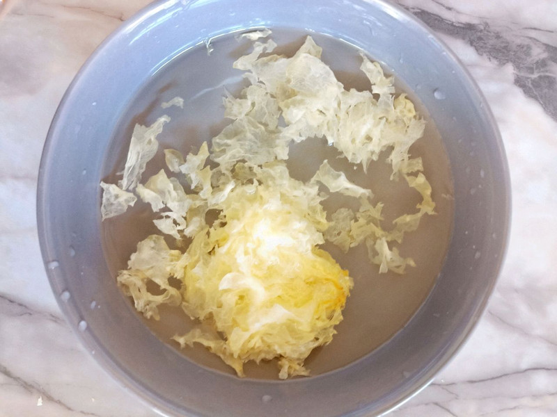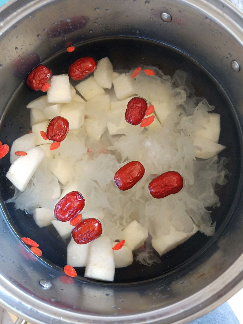 银耳凉水提前泡发,冰糖在临出锅半小时加人,炖好的梨汤色泽温润,颜色诱人