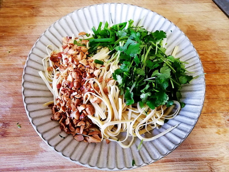 如果千张丝比较干,可以加少许的凉开水拌或者煮一下再切,会变得软一些。