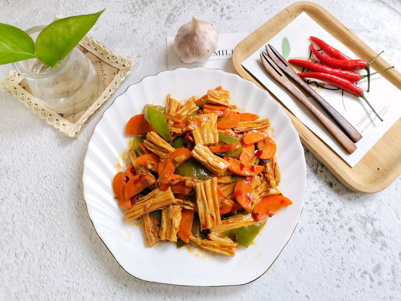 腐竹是非常受欢迎的客家美食,也是我老公的最爱。依他说比吃肉还香,所以我家年夜饭餐桌上一定会有一道腐竹,凉拌,红烧,清炒都好吃,那今年就来个时蔬炒腐竹!