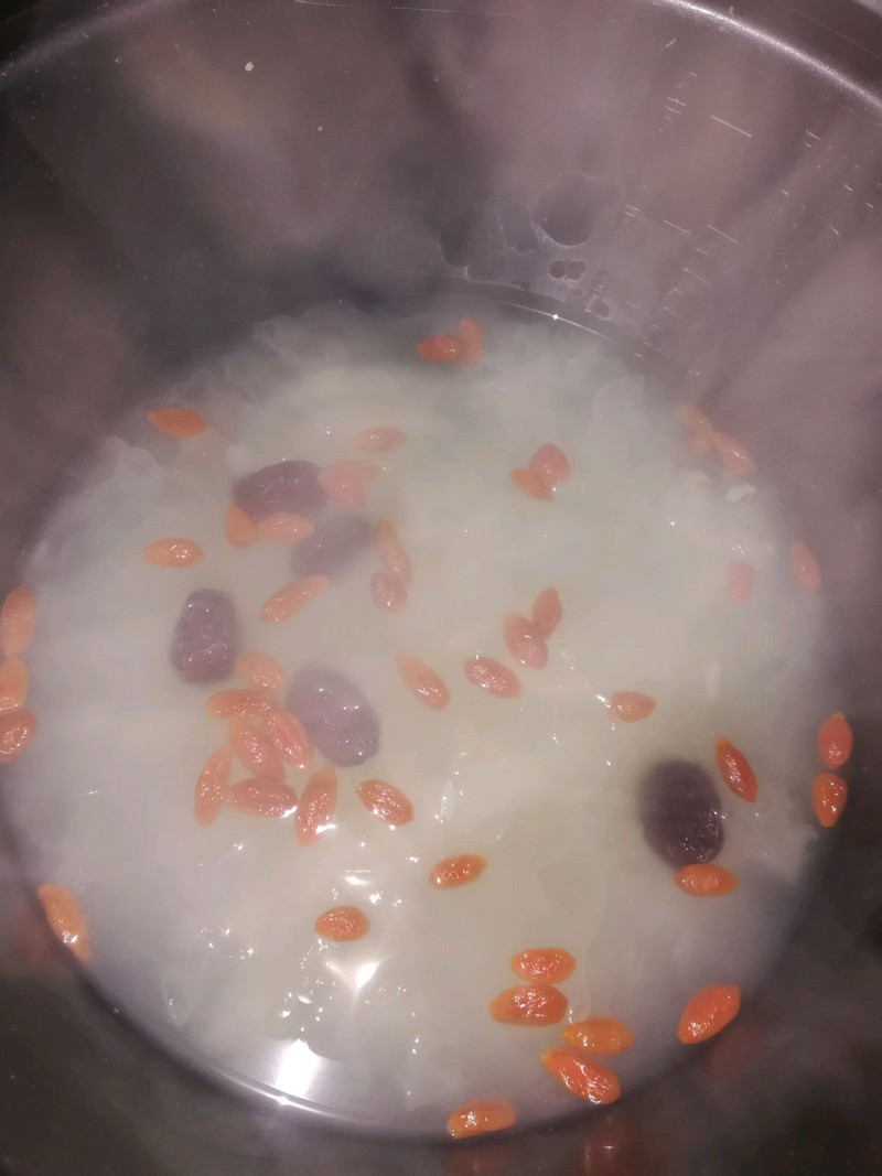 食材的用量可以按自己的口味来添加,第一次坐建议少放大米,熬出来的粥浓但不粘稠。也可以加点百合去火(我家宝贝不喜欢百合的味道,所以我没加)加点豆类更有营养。家里有不吃糖的老人,就等出锅再放糖。