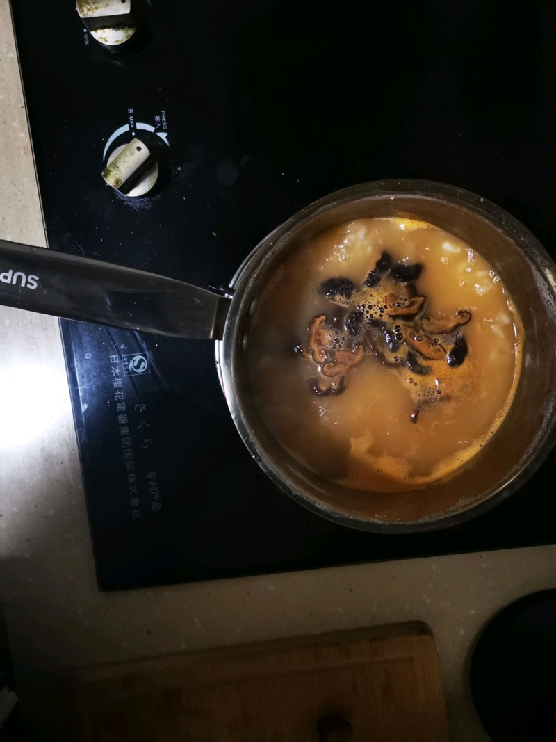 油----虾头----放入粥里----姜丝----香菇
