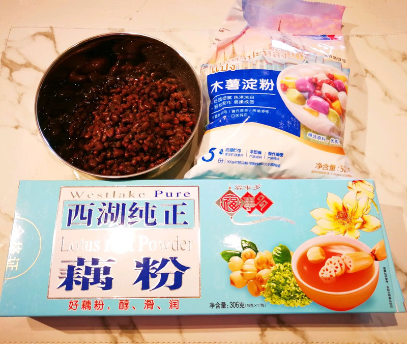 用蜜豆和木薯粉一起,做一份蜜豆藕粉糕,Q弹Q弹的,很不错哦