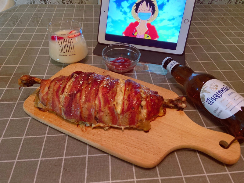 每次看到海贼王里路飞吃大棒肉鸡腿都超级馋啊,今天找到时间做了一下,超级好吃啊,原来鸡腿这样吃真的是开启美食新世界大门