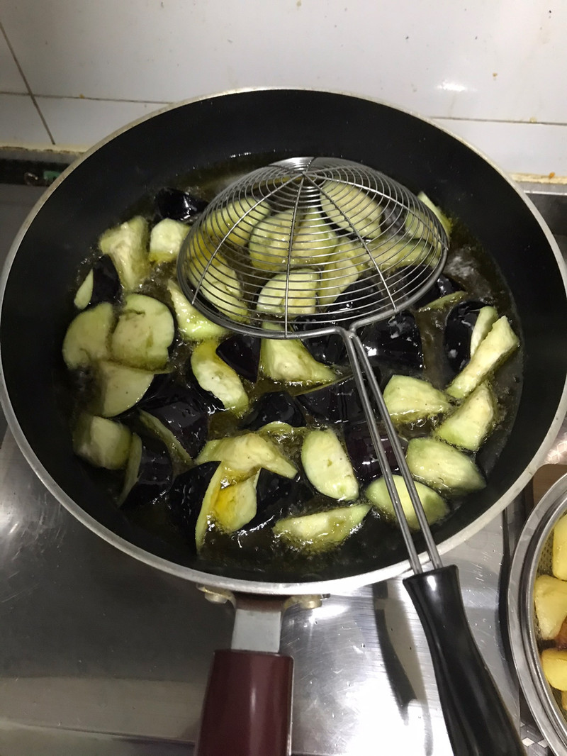 2、用复底平底锅炸东西,需要用中大火,不然会使茄子吃油太多,有一大股有腥味。