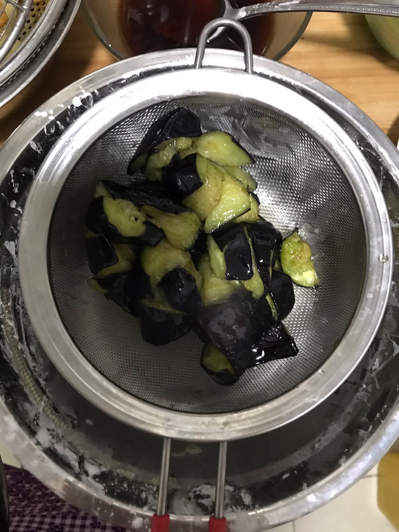3、茄子吃油,放在最后炸。