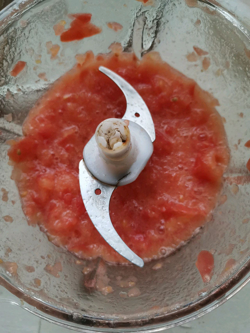 其实就是一个小细节,就是把西红柿弄得小一点,可以用打碎机把它打碎。西红柿炒鸡蛋放入一点白糖,就能遮住西红柿本身的酸味了