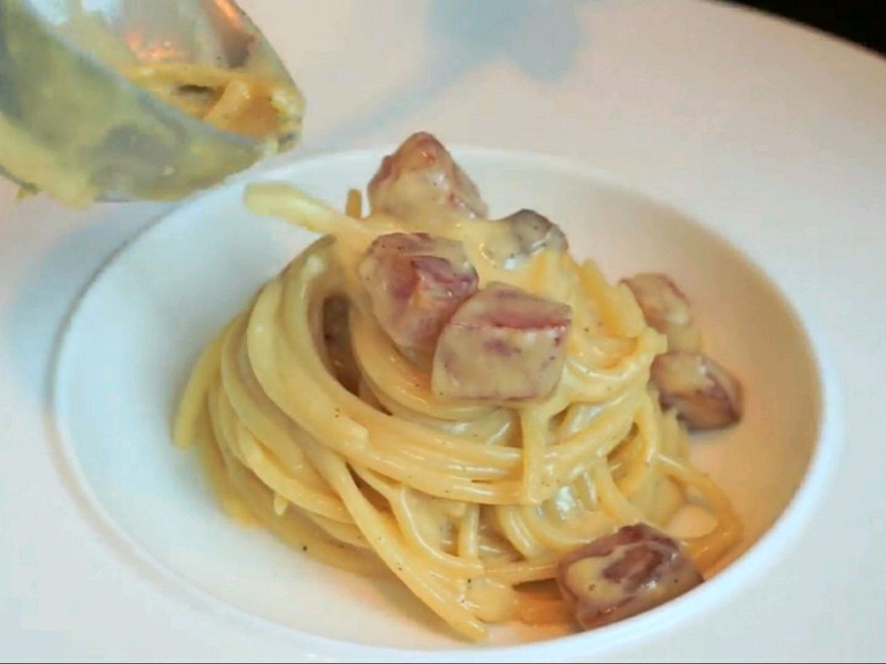 1、酱汁必须避免受到直接加热,以避免蛋汁凝固,产生固态的蛋花,因为蛋的使用就是要让整盘面的口感变得更细腻绵密,而非令拌酱变成凝结。