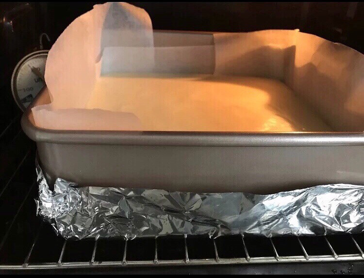 3⃣️水浴法可以直接把模具放入水中,也可以用烤网隔开;预热的时候不需要把装水的烤盘一起预热~