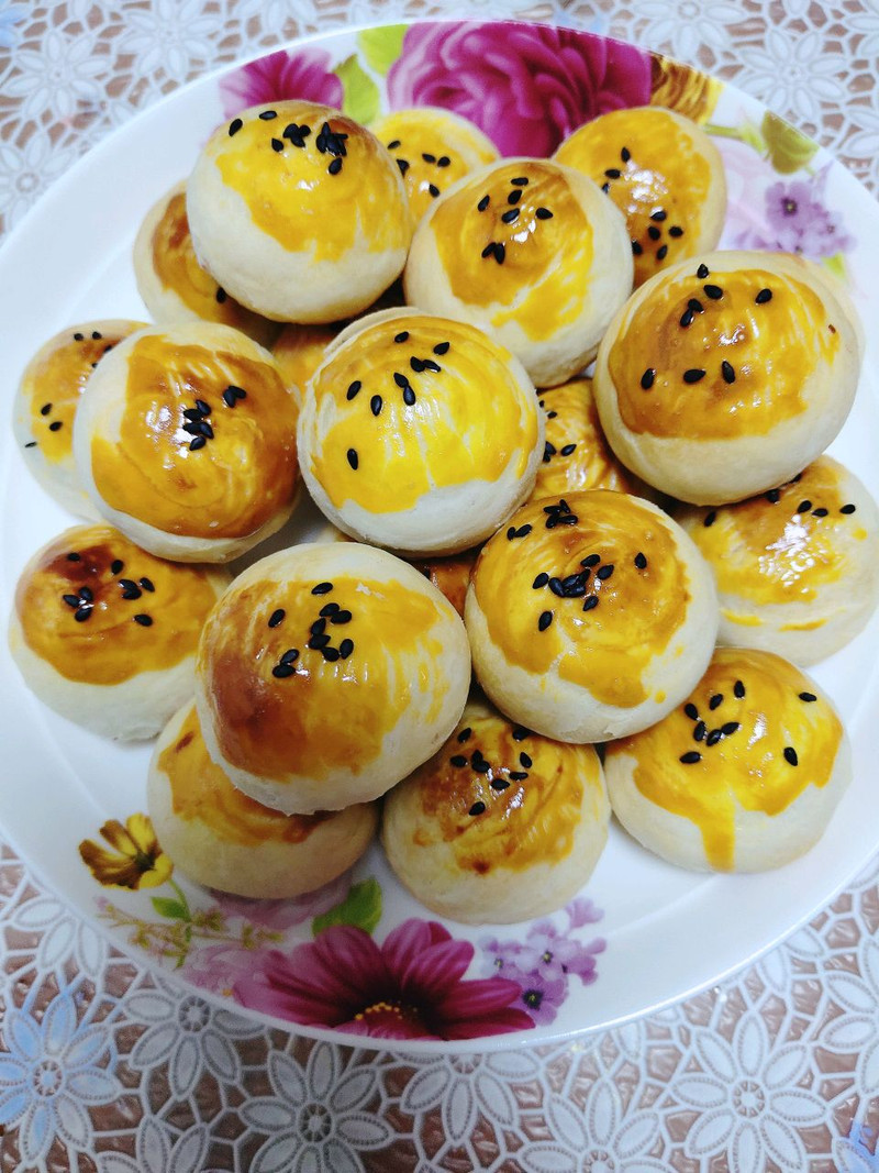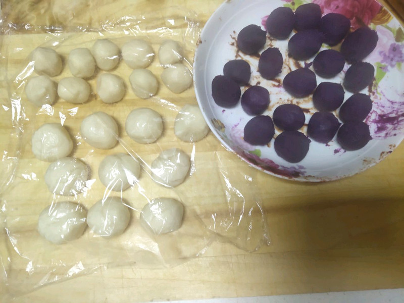 油皮和油酥的用量跟之前做的老婆饼的用量一样,这样的量可以做16个老婆饼或20个紫薯酥