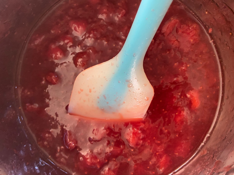 草莓已经熬化了很多了,这时候不要气馁,一定要继续熬~马上就要成功了!