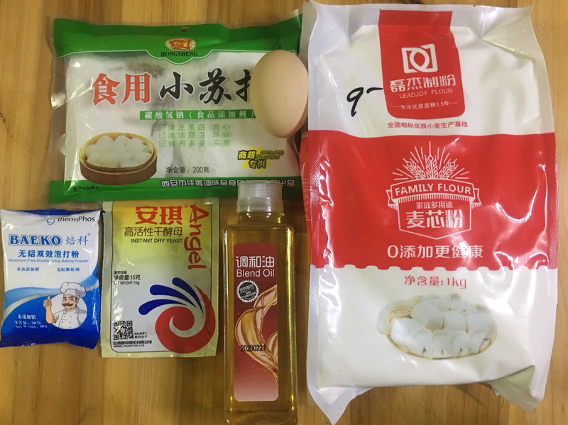 准备食材,图片上少了盐和温水,大家请见谅。 光顾着干活,和面步骤我也忘记拍了,真的是脑子不灵光。 1⃣️把面粉、酵母粉、泡打粉、苏打粉、盐、鸡蛋依次倒入盆中,用筷子搅拌一下,加入温水,用筷子搅拌成面絮状,最后加入玉米油,用拳头来揉面,最后加入玉米油和用拳头来揉面,是因为可以防止面粉黏住整个手。直至面粉揉成光滑的面团。 2⃣️揉好的面团放在盆中,用保鲜膜封好,放置冰箱冷藏过夜发酵一晚上。 3⃣️取出冷藏一晚上的面团,千万不要揉面团,在案板上撒上一些高筋面粉,把面团拉成长条状,用擀面棍擀平,切成长条状,两条叠在一起,用筷子在中间压一下,两头捏紧,防止下油锅的时候油条松散开来。 4⃣️锅里下油烧热,筷子放下去不断冒泡即可,开始炸油条。油条放进油锅,浮起后不断翻转,防止炸糊,炸至金黄色捞出控油,放凉后即可食用。自制油条的烹饪技巧