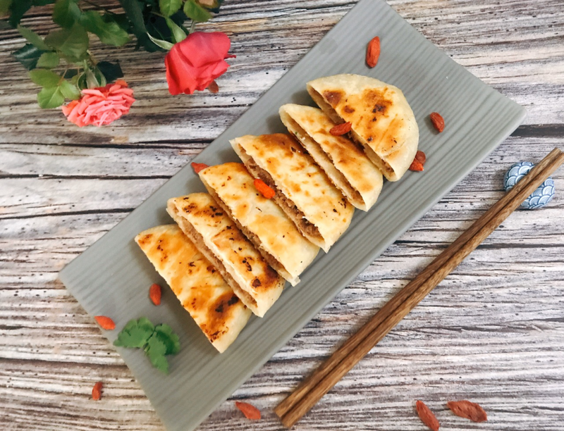 外皮酥脆,满口留香肉馅七分瘦三分肥更有水份;另外要及时清理电饼铛的细屑哟!