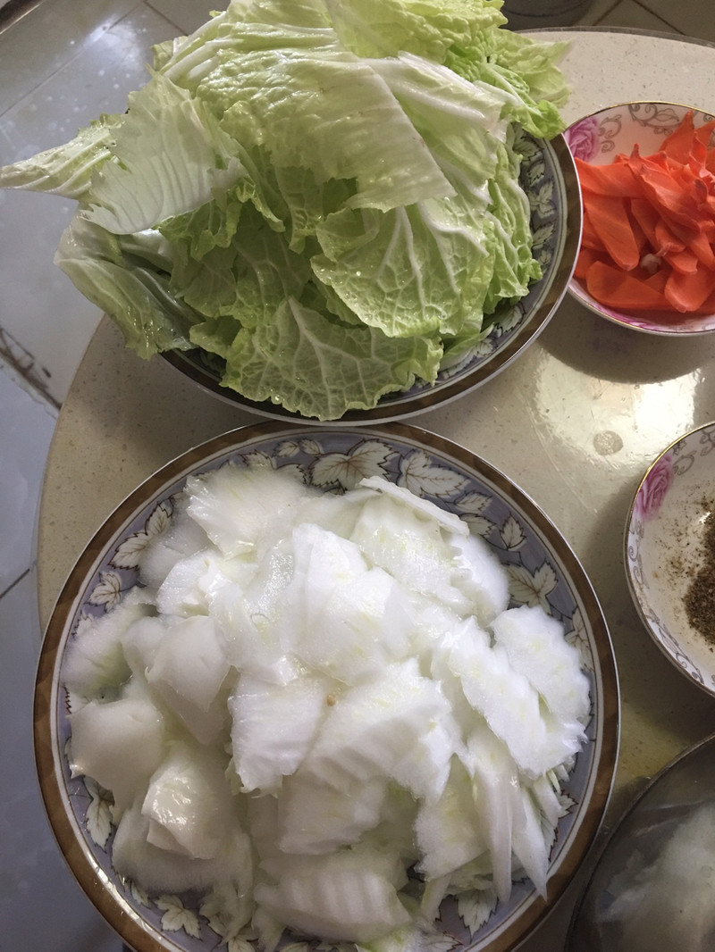1.这个菜不加水的哈,白菜水份大,如果不喜欢白菜出的汤汁太多,就加入提前泡发好的粉条或者宽粉一起炖,更热闹