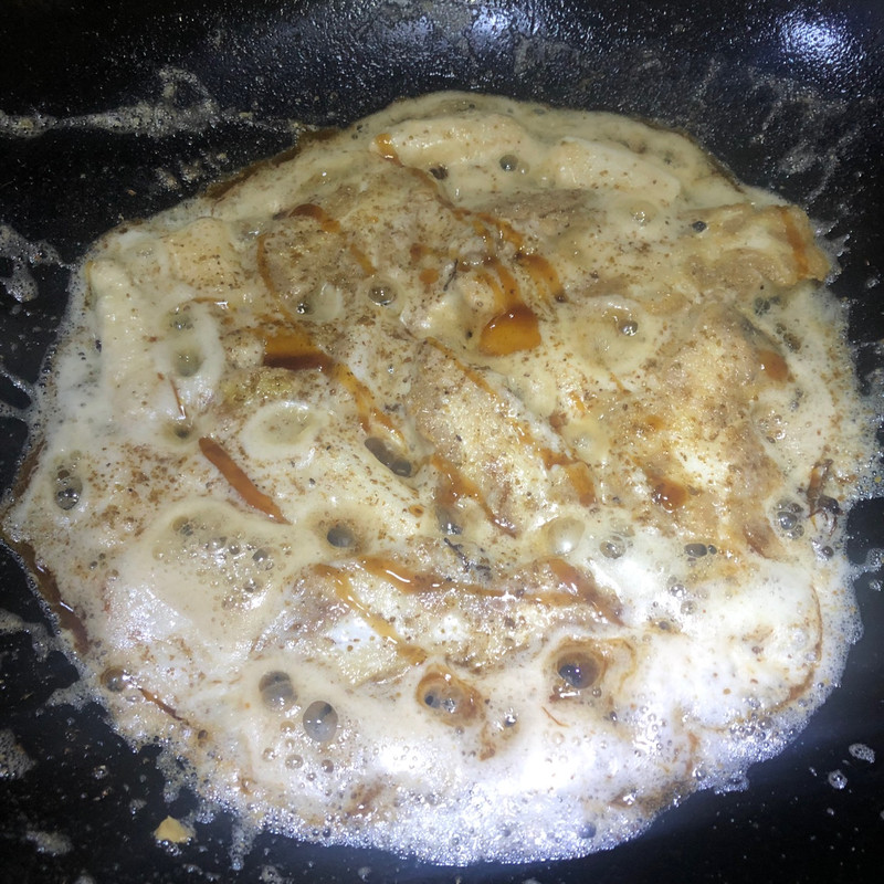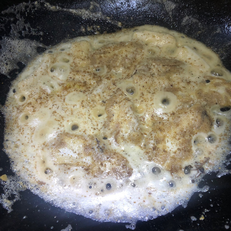 热油,放花椒(青花椒,不是特别麻,家里人不知去哪玩摘来的哈哈)姜,爆香下脑、髓。 注意: 1.不要翻,不要翻,不要翻 2.中小火 3.会起很多泡泡看起来很恶心,丹好像也是因为这个,不太容易焦 4.可以适当均匀撒些盐在上面 5.脑边微微变硬变黄关火,稍微冷却了,可以晃动锅,就松开了,(热的时候髓可以随意翻但脑会烂)再翻面,此时就可以观察是否需要复煎。香煎牛脑的烹饪技巧