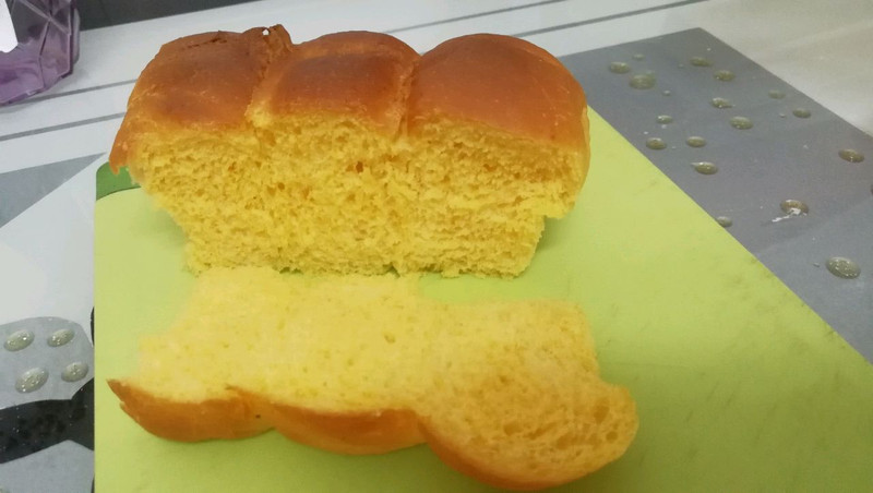 南瓜比较多水分,所以这个方子减少了牛奶的份量,增加了面粉,大家要看各自面粉的吸水性适当增加或者减少水的份量哦!