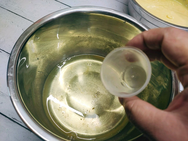 2.搅拌蛋黄时一样一样材料加入,完全均匀再