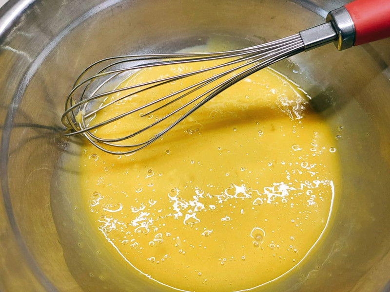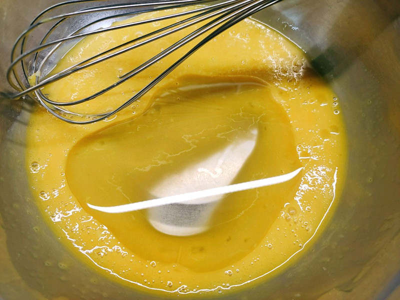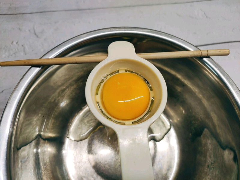 5.拌蛋白和蛋黄以切拌手法,以免消泡。