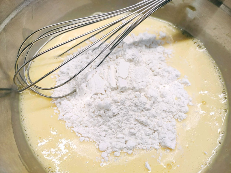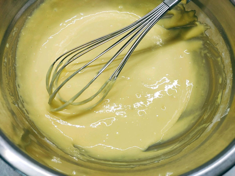 3.搅拌蛋黄加入面粉时不要过度,拌匀即可。