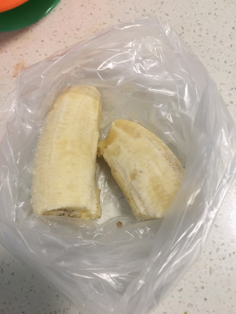 5、捏香蕉泥的时候细心些,别把保鲜袋捏破了