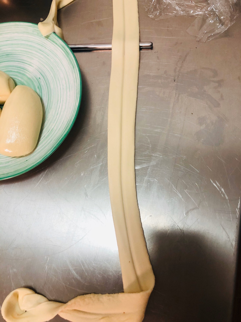 * 面团醒的时候要注意盖保鲜膜保湿,面团表面干了会没有韧性,扯的时候容易断