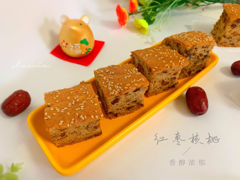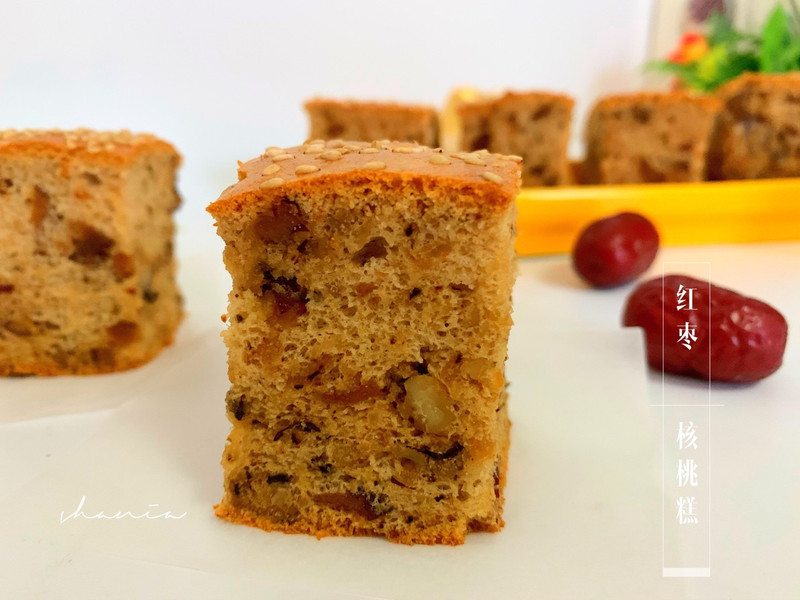 不用泡打粉也能做出暄软蓬松的红枣核桃糕