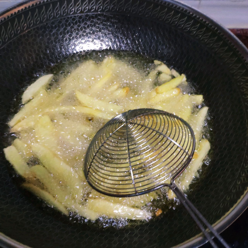 因为家里土豆多到烂了几个 想起自己做的番茄酱还没吃完 那就为了它炸个薯条叭 真的不输麦当当的薯条噢 自己做还不用出去买 外面的薯条还贵 自己炸一锅吃到饱~