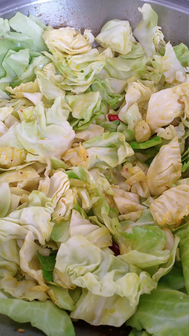 2⃣、全程要大火翻炒,这样炒出来的包菜脆脆的,炒的时间也不宜过长,个人觉得超过5分钟就变软不好吃了。还有火一会儿大一会儿小,我觉得那样炒出来的也太软了。我喜欢吃脆的,小孩子也喜欢吃。