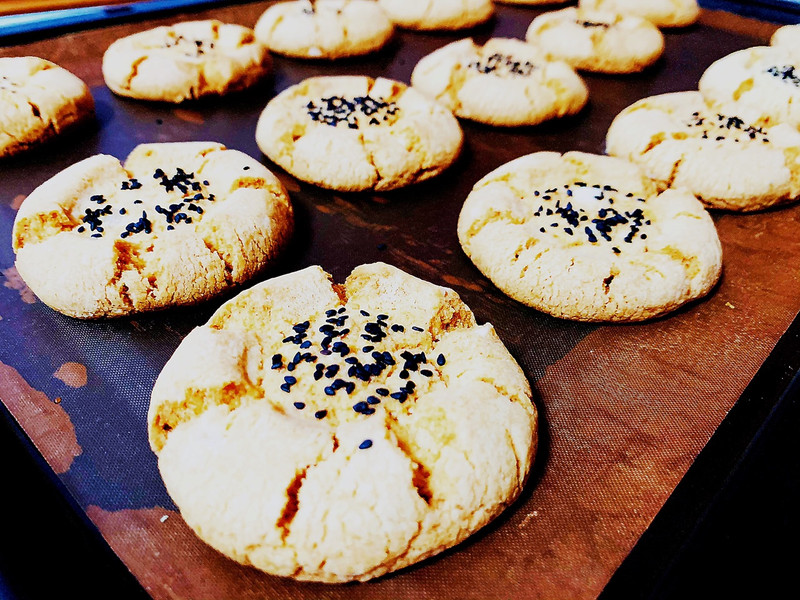 注意:按压中间的时候要压得深一点,但是又不能压穿!洞口压得越深,烤的时候裂得越好!
