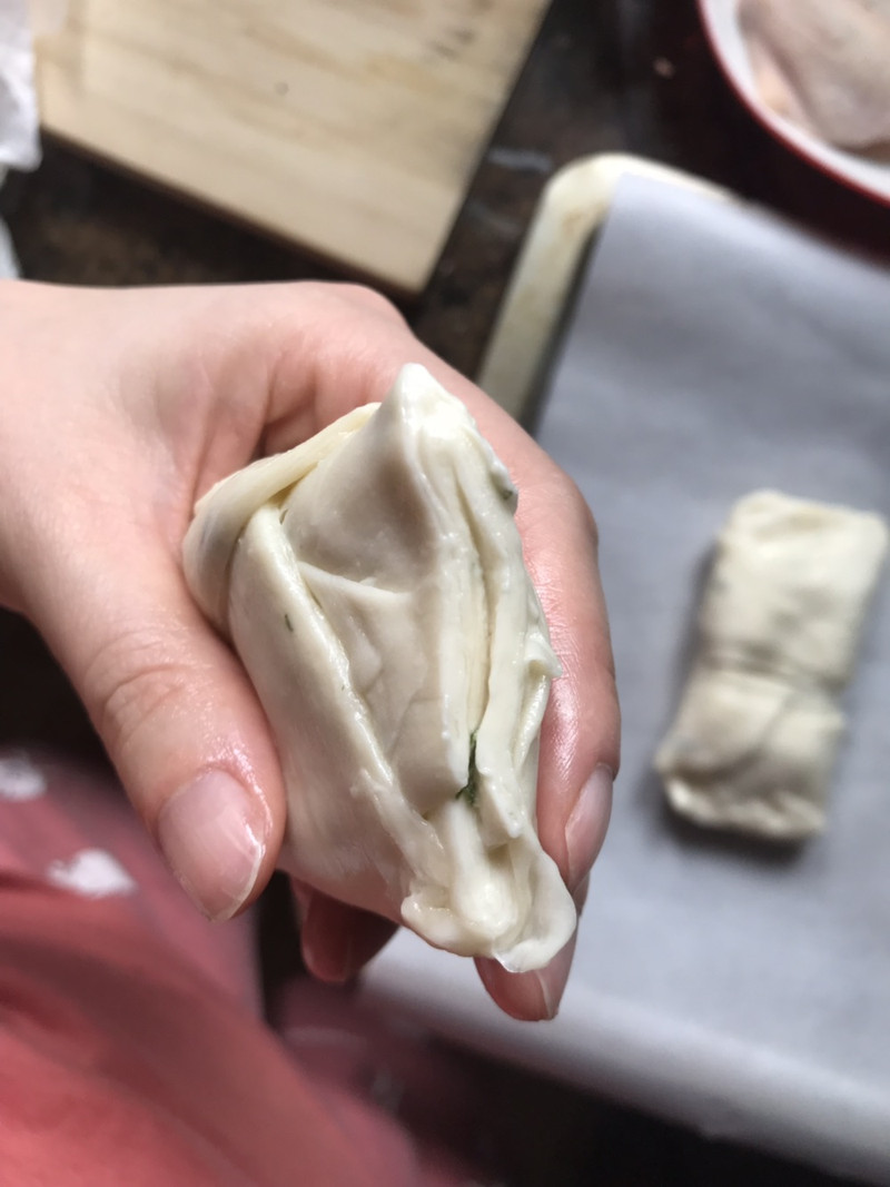其实就是用手抓饼包裹着巧克力,爱怎么包就怎么包。