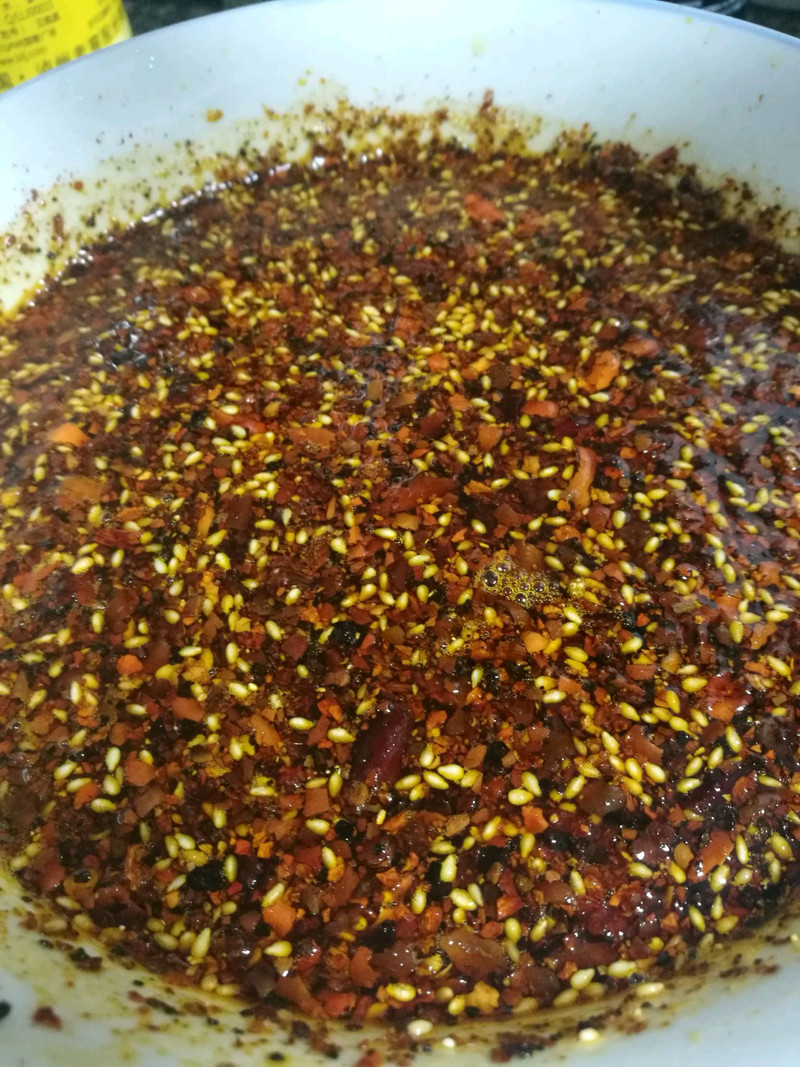 我做的油辣子说白了就是用烧好了的香油淋在辣椒面上,喜欢味道更香的可以先在油里加五香大料、洋葱、生姜、大蒜在锅里熬出味道再淋入辣椒面里面。