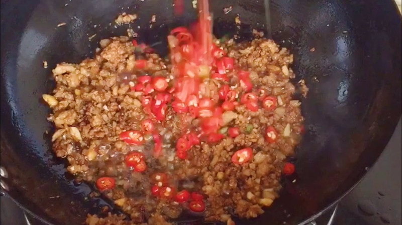 2、我做的肉末臊子是5个人的分量,如果一个人吃,可以减少分量。