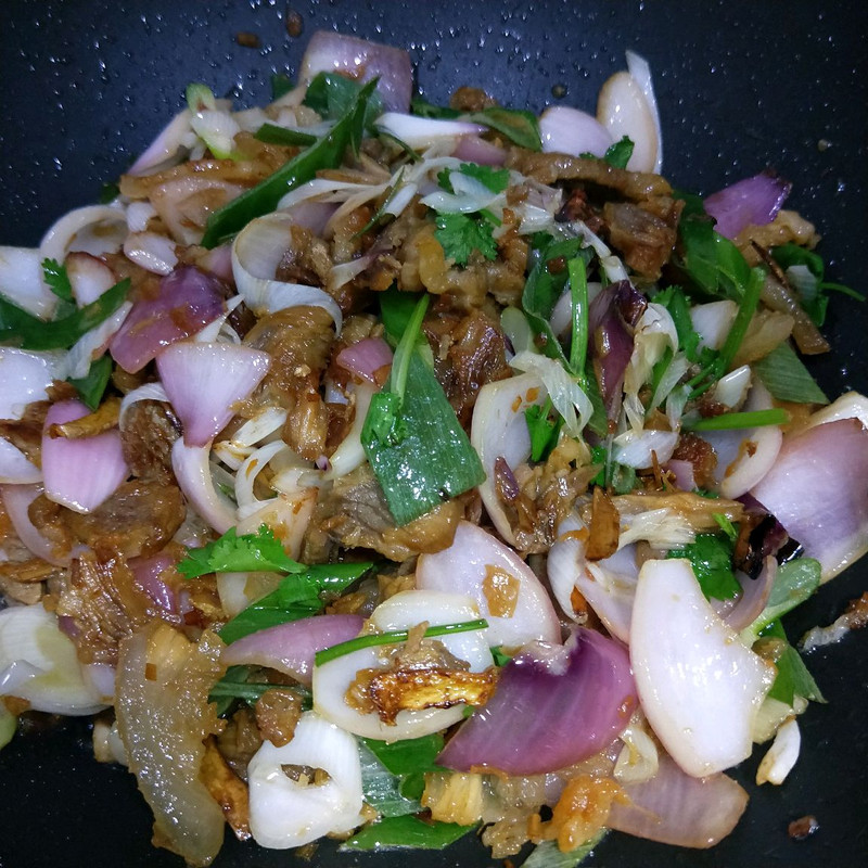 有一次,家里只剩了半个洋葱和一截大葱,就想着混搭,用它们炒腊肉吧!哈,原来腊肉的良配是洋葱啊,比搭白菜还好吃,香气四溢,洋葱还带了一点甜味,完美~