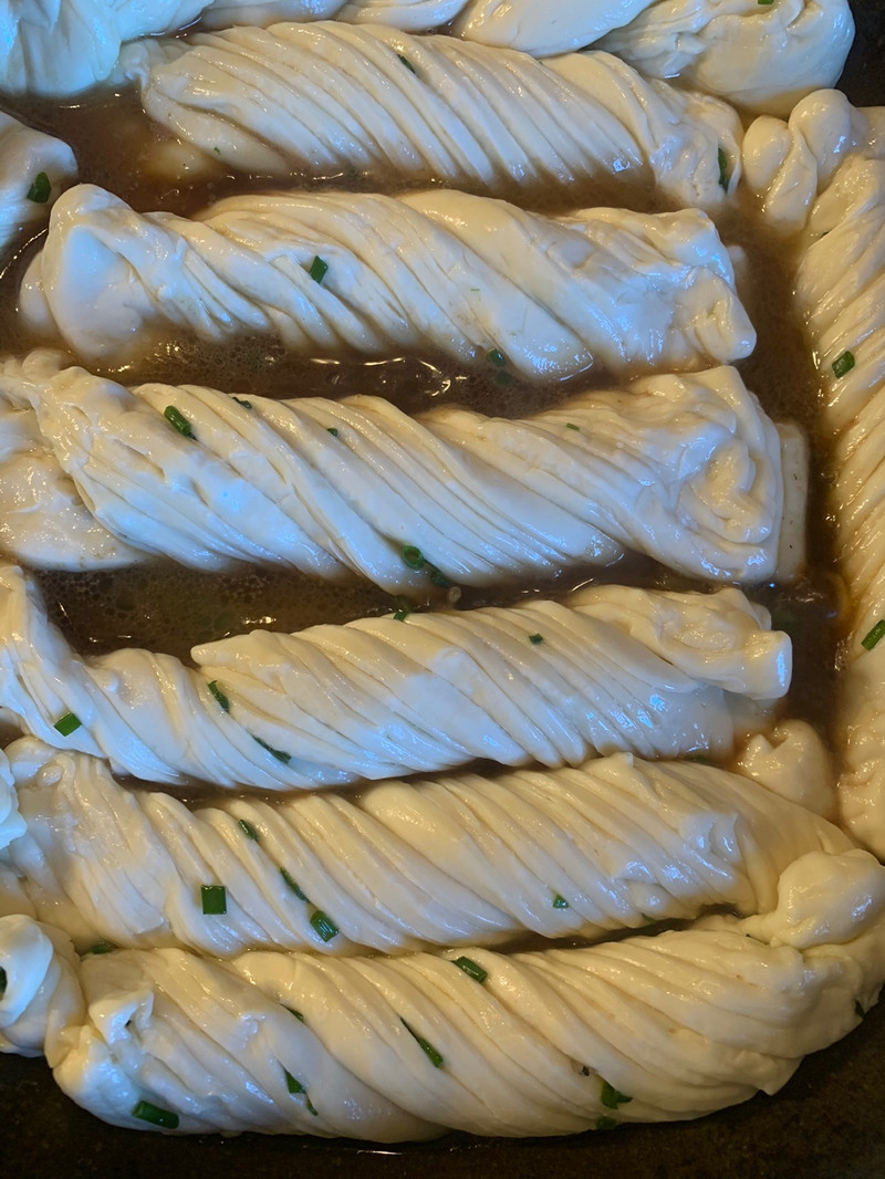 揉面后无需醒发,可直接做成花卷造型再醒发。
