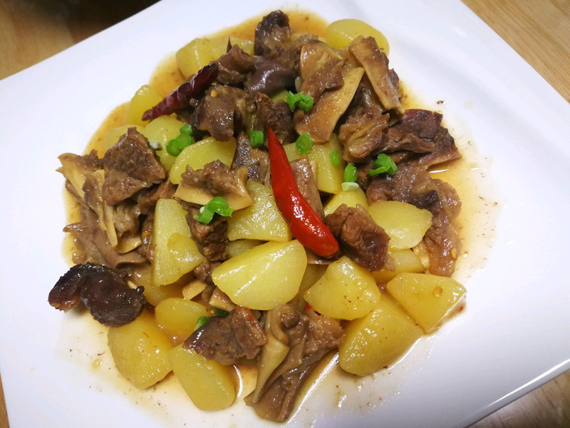 牛腩不要太发,也不能太硬,必须控制好火候,土豆一定要焖熟,也不能太烂。