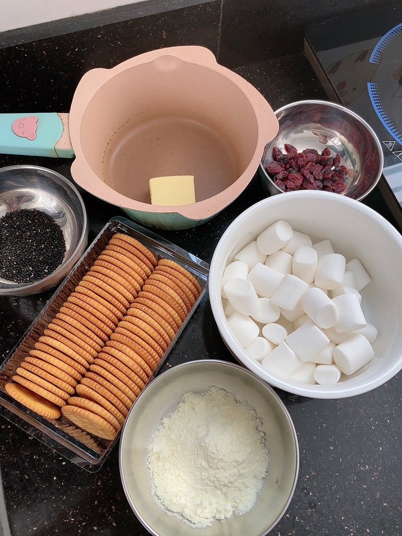 棉花糖一定要最低温度炒。夹饼干速度一定要快,如果硬了可以稍微加热一下。