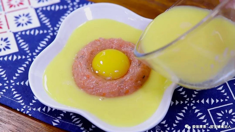 舀上一勺,首先入口的就是滑嫩嫩的蛋羹啦,在纵享丝滑的同时还能吃到细腻又鲜香的肉泥,里面藏着海鲜和蔬菜,就算是不爱吃菜的宝宝也能轻松下肚。