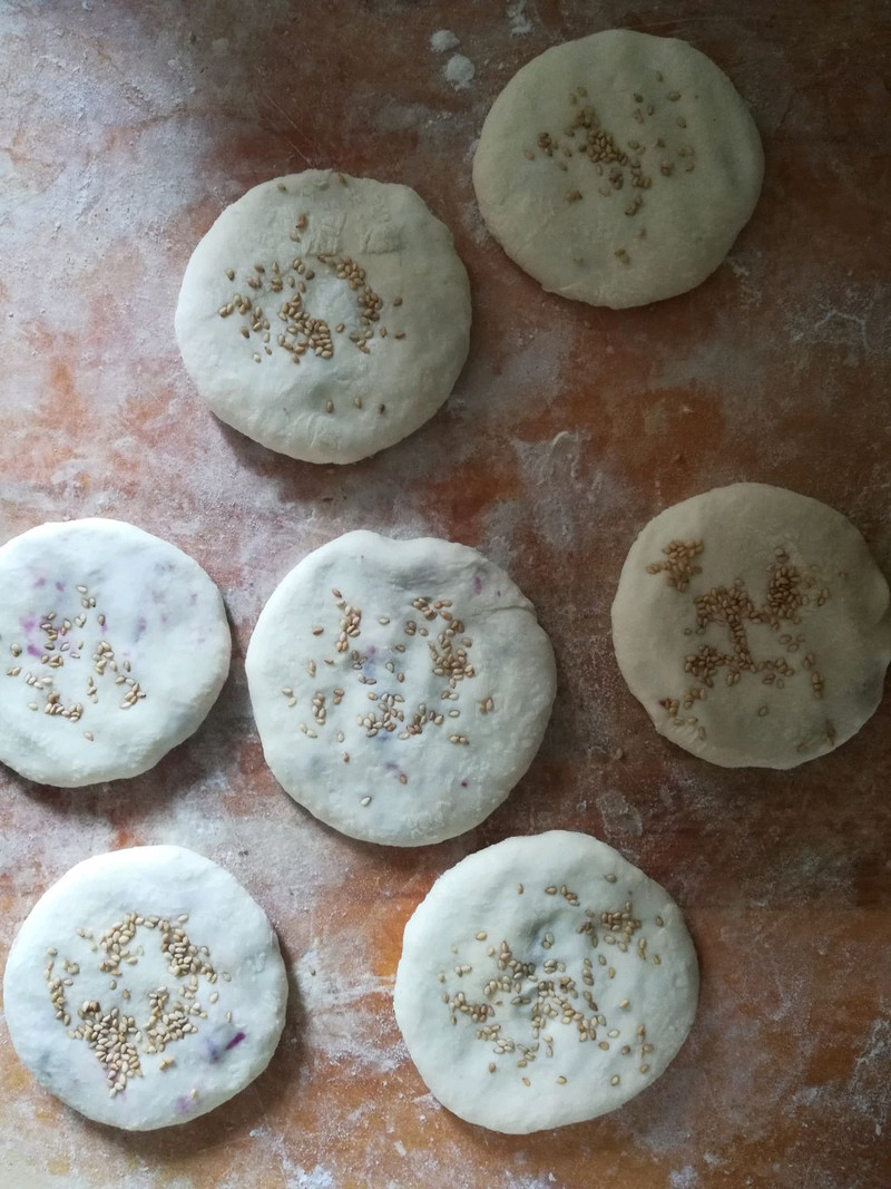 判断紫薯饼成熟,一看饼面是否金黄,二看饼是否鼓起,煎制时可加锅盖,这样成熟的快,还不容易饼皮太硬。