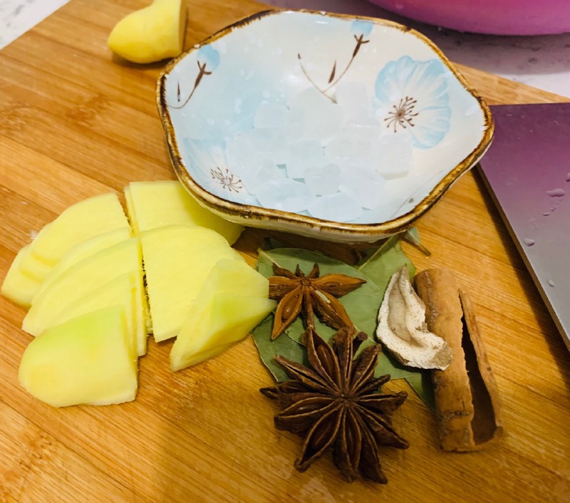 3:放入电饭煲煲的时候把香料取出,防止煮制时间过长,猪蹄本身香味被完全卤掉