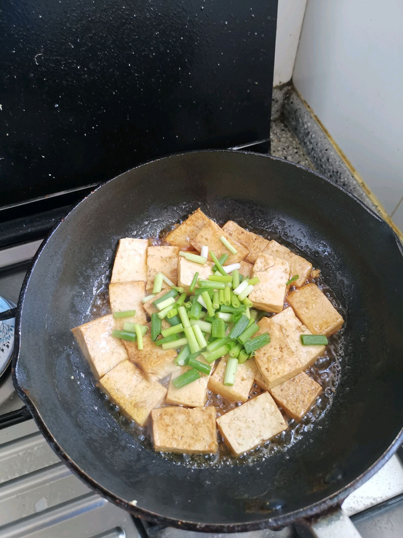 颠勺过程会使一些豆腐碎掉,这都不是事,不必刻意追求完美。碎豆腐和在米饭里,味道更浓郁!