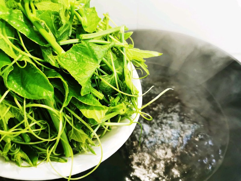 焯水时,放少许盐和油,可以让佛手瓜尖颜色更翠绿。