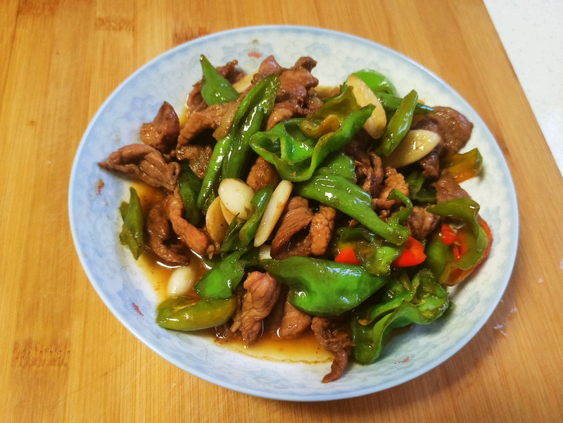 清楚地记得在少时:父亲将炒好的青椒炒肉端上桌,便立时吸住了我全部的注意力---大块的肉片,青油油的辣椒,盘底浮着薄薄一层诱人的菜油,所有这些元素都是白米饭的最佳伴侣。记得那时的辣椒超辣,吃几块嘴里就烧起来了,脑门的汗也冒出来了,不停的吸溜吸溜着,可这些根本阻止不了我继续勇敢地将辣椒塞进嘴里的举动。